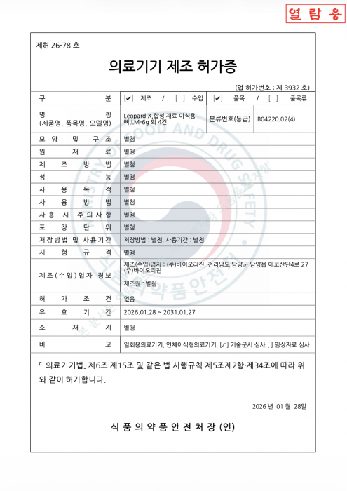 LEOPARD X 품목허가증